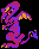 Similar to Mini-Kraid, it uses Ridley's attacks and dies in a single hit from a Missile or Screw Attack. It has a purple, orange, and magenta palette as opposed to the real Ridley's mauve, green and dark purple palette.
