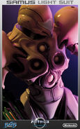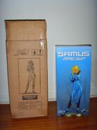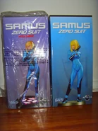 First 4 Figure's statue of Zero Suit Samus shows the Zero Suit in its appearance in Metroid Prime 2: Echoes. Samus is shown wielding her Paralyzer (absent in Echoes) with a curved stance. First 4 Figures claimed that "she has all the curves in the right places". Production was limited to 2,500 statues.