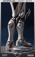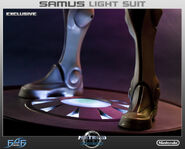 Currently, five Samus statuettes have been produced. Three are of upgraded Power Suits, all in identical poses. The other two are Zero Suit Samus statues in identical poses - one, however, features a light-up base and is exclusive to the First 4 Figures website.