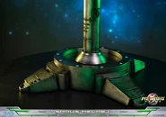 Samus Aran's Gunship from Metroid Prime 2: Echoes was released in mid-2010, and features lights for the base, thrusters, and windscreen. The base of the statue is a rounded mirror base with light blue lights that rotate around when activated. The Gunship can also be turned on the base at a swivel joint, and comes with a screw to secure it in a fixed position. First 4 Figures has also hinted that they will release more of Samus's Gunships in the near future.