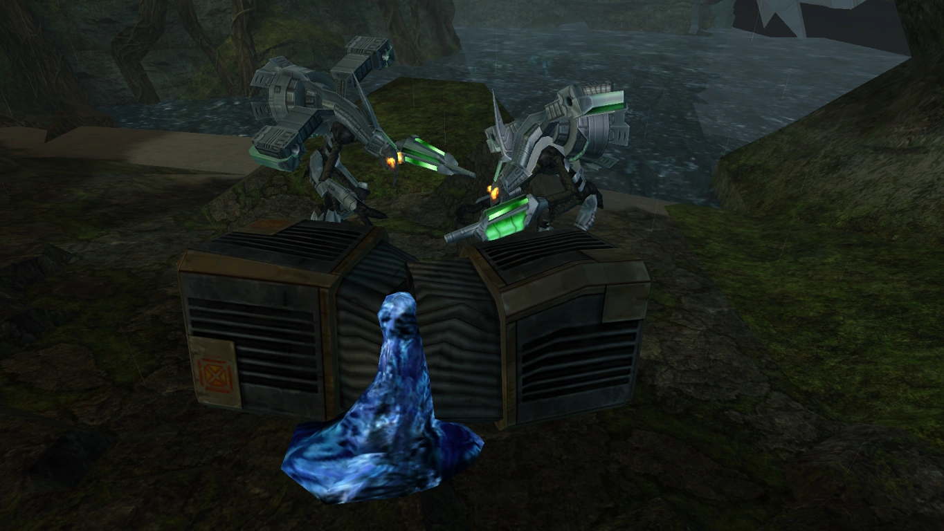 An unused "Don't Load" layer exists. Activating it has the room load two deceased Space Pirates in the water near the crashed frigate. They behave as the other deceased bodies within the crashed frigate, containing the Space Pirate Logbook scan.