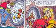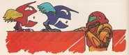 In the comic story, Money Changes Everything, a swarm of small Gamets flew out of missing tiles in the floor and latched onto Samus in a room of Norfair. Kid Icarus's arrows bounce off of them, but Kevin's Zapper makes swift work of them. Samus states that they drained all of her energy and that her armor would explode. Kevin acquired an Energy Tank to prevent this.