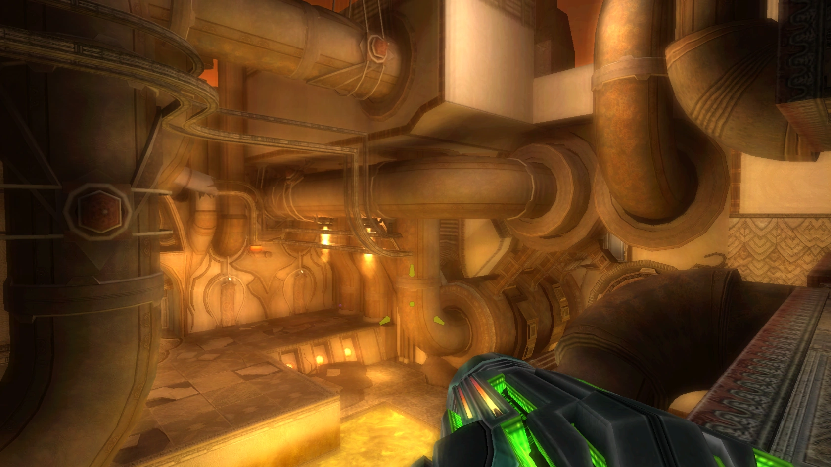 Other features in the room are the Reptilicus that can be battled there, the river of Fuel Gel in the middle, the processing chamber distributing Fuel Gel into the piping network, and the stone-carved Fuel Gel pumps. As these pumps were created by the Galactic Federation, it is a strong indication that they respect the ruins of the Bryyonians' society.