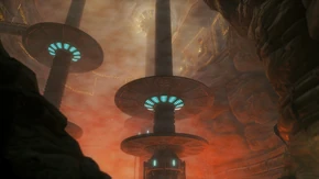 The Geothermal Core is a room in the Magmoor Caverns on Tallon IV. It appears in Metroid Prime. It has three pillars in a large pool of magma that each require power from a Spinner. By using the Spinner, the Rotating lift platforms on the pillars rise and release access to a Bomb Slot. Activating this Bomb Slot will cause the pillars to raise the ceiling, and a large and long Spider Ball Track will be revealed that lines the wall in a mazelike pattern. Samus has to roll across tracks, plates, and tubes and occasionally even has to drop several meters in order to reach the next track. At the end of the track, there is a door that leads to the Plasma Processing room, with Bendezium (in PAL, Japanese, and subsequent versions) blocking the door. Later in the game, both Puddle Spores will disappear from the room.