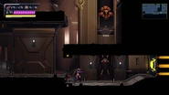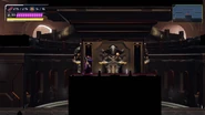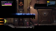 When Samus returns to here on the lowest floor after acquiring the Storm Missiles, the floor is sealed off by four shutters blocking access to the exits and upper part of the concourse. Twin Robot Chozo Soldiers accost Samus and force her to do battle. When they are destroyed, the shutters lift, allowing Samus to continue.