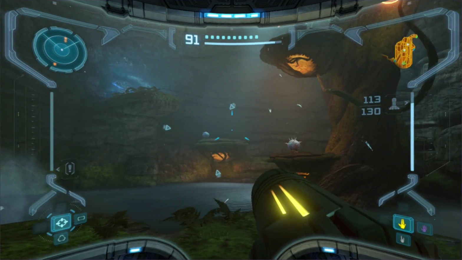 - If this room is entered from Hydro Access Tunnel, the Crashed Ship theme keeps playing before Samus leaves the water at the bottom of the Great Tree Hall. If she enters the water again from the Great Tree Hall, Tallon Overworld Revisited will continue to play until she reaches the Hydro Access Tunnel.