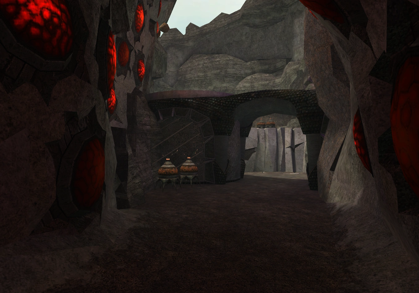 This room takes its name from the corridor connecting from Meeting Grounds, which contains many red eyelike decorations on the walls. The room has three levels (one which is merely a stepping stone to the highest level). In the room is a Portal that can transport the user to Dark Aether. Samus must use this Portal to reach the next room when she first enters it (because of a Green Hatch, which she cannot destroy due to her lack of Super Missiles).