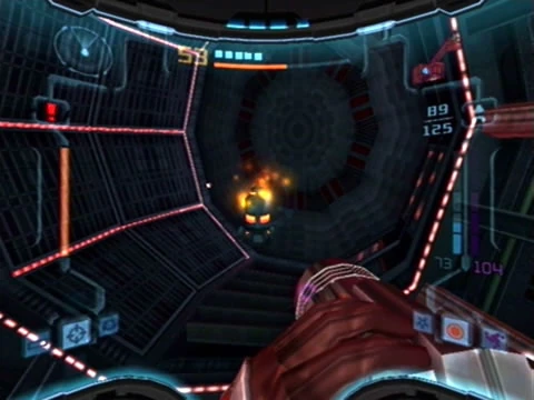 The cliff is a small side-room, initially a curved hallway that leads into a narrow passageway on the side of the Ing Hive facility. Hence the name, this room is home to a large drop on the lower right, from which a Dark Tallon Metroid emerges. The presence of broken architecture above the chasm suggests that the room suffered damage somehow. By continuing on to the end of the hallway, Samus can enter a narrow corridor, at the end of which is a Missile Expansion, blocked by two Dark Diligence Drones.