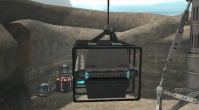 In Industrial Site, Samus must scan an Interface Module to cause the industrial winch system that connects to the crate to lift it out of the way. In Temple Assembly Site, it can be seen moving on the winch system up to a complete stop during Samus' entrance. Samus can scan another Interface Module to lower it. However, the failing winch system will result in the cable connection weakening. Samus can sever the cable by firing her Charge Beam at a weak spot. Another Heavy Transport Crate can be seen in the room, but is not involved in gameplay.