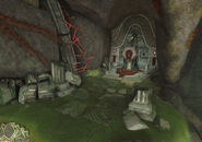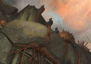 Hillside Vista is an open room that sits on the side of a canyon in the Bryyo Cliffside on Bryyo in Metroid Prime 3: Corruption. Here, an open chasm lies between the entrance from the Grand Court and the other side of the Hillside Vista which holds the entrance to Reliquary I. This chasm can be traversed by swinging from a Grapple Swing Point in the middle of the abyss. It can, however, be traversed without the Grapple Swing by using a stone-covered Morph Ball hole that leads to a tunnel. This stone can be destroyed using Morph Ball Bombs, allowing Samus to enter an area populated by Snatchers and a Korba. These Snatchers can be used to levitate to an upper level containing a Missile Expansion. This tunnel can then be exited from both levels, allowing Samus to exit to the other side of the canyon. This side contains a blocking statue. This statue can be blown off by grappling and pulling off a panel that covers some ignitable Fuel Gel. Destroying the statue reveals the door to Reliquary I, and inevitably, the Grapple Swing.