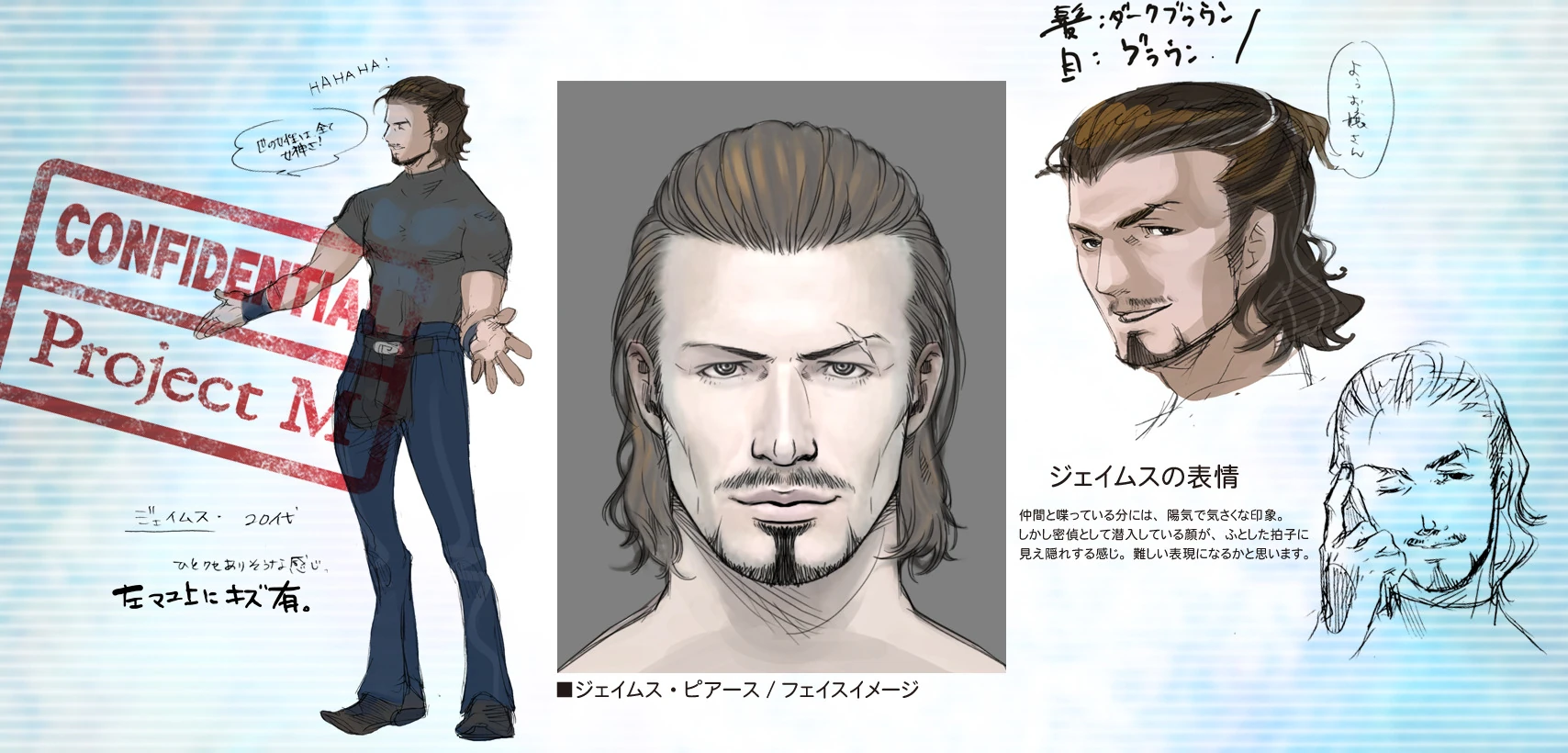James has a cheerful and good-humored temperament when chatting with friends. Concept art depicts him laughing and praising women.[1] However, this friendliness belies his true intentions, as he is secretly a determined assassin who shows no remorse in assassinating his own colleagues and sabotaging the 07th Platoon to fulfill his mission.