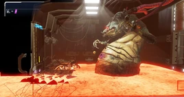 "Kraid's room" is a room in Cataris on ZDR. It is the location where Kraid was held captive by the Mawkin tribe and where Samus Aran battles him in Metroid Dread.