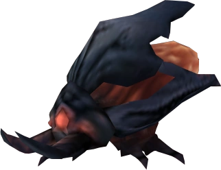 The Kralee is a beetle-like species of predatory insectoid bioform seen on Aether in Metroid Prime 2: Echoes. It can open transdimensional portals with the red-colored crystal on its back. However, it is stated that the creature has no control over this ability, despite this trait having apparently evolved for defensive purposes. Thus, Kralee spends much of its time in a state of dimensional flux. It can be seen easily using the Dark Visor.