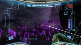 Lake Access is a room in the Sky Temple Grounds on Dark Aether. It appears in Metroid Prime 2: Echoes. It is a long, narrow, and rocky indoor tunnel that features patches of mutated Venom Weeds on the floor, a durable plantform, as well as objects composed of nutrient-grade biomatter. The Aether equivalent of this room is the Collapsed Tunnel. Unlike the latter, Samus travels primarily on foot through this room. There does not appear to be a visible Morph Ball tunnel situated within this room, though it is possible the tunnel caved in.