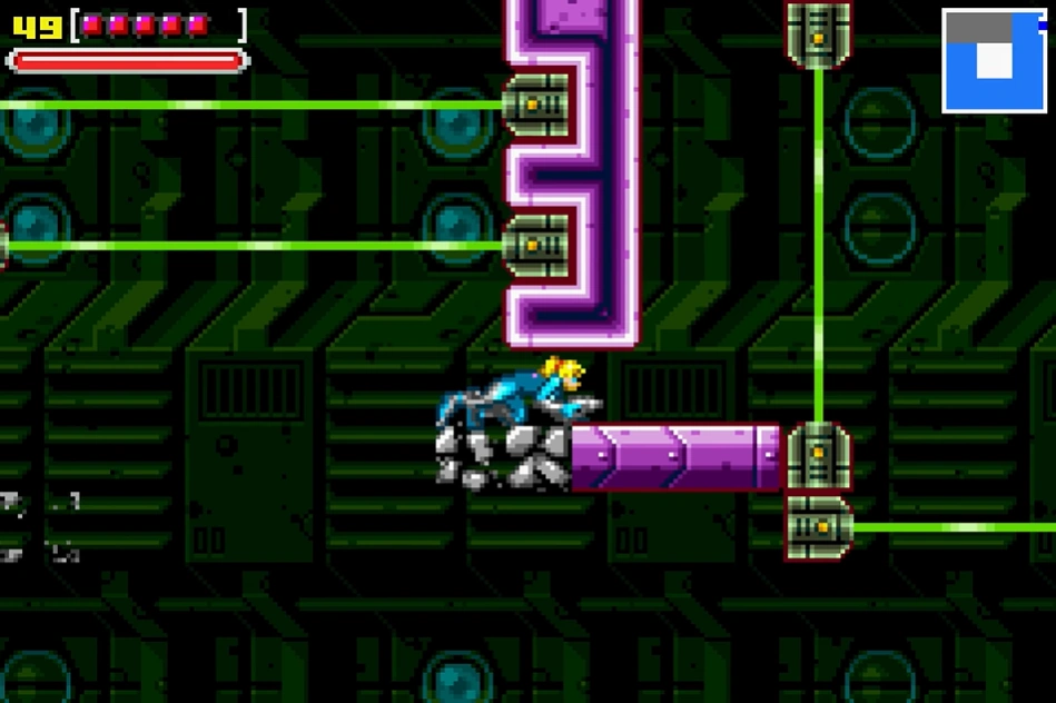 - "The large area left of the central save room is loaded with green lasers and platforms that will collapse under your weight after a few seconds. Jump, climb, crawl and avoid contact with the beams as you make your way to the area's upper-left corner. If you cross a beam, Space Pirates will make your escape more interesting."