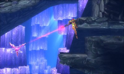 "The Ice Beam in #Metroid: Samus Returns allows her to temporarily freeze enemies in place. Frozen enemies can even be used as platforms."[12]