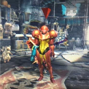 Samus was intended to appear at Starbeans Cafe among other Nintendo characters, during a scripted event. Dialog remains in the game's code - "Cashier: Whoa! A power outage? Yikes! Samus Aran! I see you're rocking and rolling as usual! ...Looks like your energy tanks are empty! Sorry, but can't you give your Hoolumbian to Samus? Oh! Feeling better?" She would then give the player an Energy Tank in exchange for the drink. Ultimately, most of the items were replaced with similar ones in the final game, though the Energy Tank became a Power Grip accessory.)
