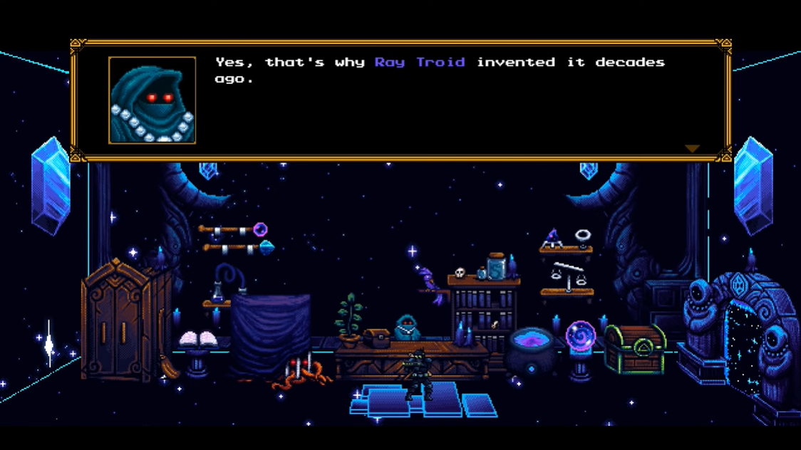 After Ninja transitions into becoming a Shopkeeper to assist Soldier in his role as the Messenger, they give him a beam charger upgrade. When Soldier returns, he thanks the Shopkeeper and replies that the upgrade feels natural, to which the Shopkeeper states that's the reason why "Ray Troid" invented it decades ago. The scene can be viewed here. A transcript of the dialogue is below:
