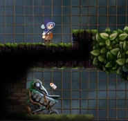 This Metroidvania game was heavily inspired by Super Metroid. In a similar role to the Eye, there is a security camera which shines on the protagonist, Jason Fleming, when he first enters the complex. There is a Speed Booster-like upgrade called the Friction Dampener and an Ice Beam-like upgrade called the Foam Gun, as well as Missiles. The obstacles are color-coded similar to Metroid: Red obstacles require Missiles, green requires Grenades, purple requires Foam, and blue requires the Friction Dampener. One of the extra achievements is also called "Jason Bailey" for completing the game with 100% in under 2 hours with its icon depicting a pair of briefs, a nod to Justin Bailey.