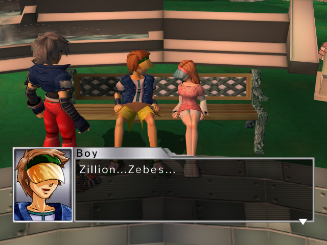 A boy, when guessing what the "Z" in "Z Syndicate" stands for, suggests Zebes among other words which include various Nintendo references.