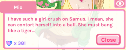 A free update to this app on July 1, 2020 added several costumes to this app, including one based on Samus, for the "playable" bunny protagonist. The costume appears to be based on her suit's appearance in Other M.