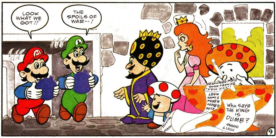 In the Mario series comic Duh Stoopid Bomb! published by the Nintendo Comics System, Mother Brain's name appears on a list of people who think King Toadstool is dumb.