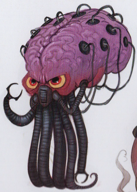 Concept art for an unused character that resembles Mother Brain in the film Wreck-It Ralph appears under "Desserted[sic] Characters". The design was drawn by Cory Loftis. It appears along with numerous other characters likely intended to evoke other Nintendo characters.