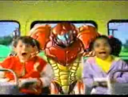 Samus once appeared in a Kool-Aid Commercial that advertised a contest in which a copy of Metroid II: Return of Samus would be given away to the winner. An animated version of her is seen in the back of a school bus with two children.