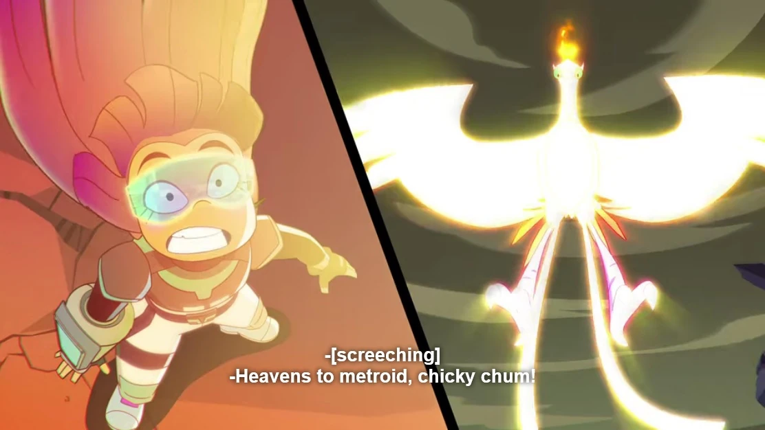 In season 1, episode 8, "Adventures in Pet Training", Miko exclaims "Heavens to Metroid!" Coincidentally, the show also has a female character named Ridley.