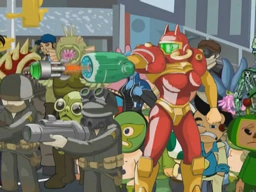 Samus's ship (colored blue) and Metroids appear briefly in episode 31.