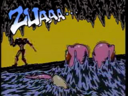 The Japanese commercial for Metroid II is a mix of comic book art, live action and a toy action figure of Samus. The commercial begins showing Samus's Star Ship landing, with a cloud of gas. The Game Boy logo is above the ship as Samus walks into the caverns of SR388. As she stands at the entrance, her Power Suit turns into the Varia Suit. A first-person view of Samus' visor is shown as she sees a Gawron swooping down at her. She aims at an Octroll that rises out of a pool of liquid, Screw Attacks up to a ledge, falls down a shaft and shoots a Gullugg and Skreek. At the end of the commercial, we see Samus being attacked by an Omega Metroid. The focus zooms into Samus' Arm Cannon as the Missile hatch opens and explodes. The logo can be seen in front of the explosion. The last scene is of Samus' helmet, with footage of an Omega Metroid battle ingame reflected off the helmet. Throughout the trailer, a man speaks in Japanese: "Introducing Metroid II, the action game that's causing waves in America! As metroids increase in power, find all the items. With countless enemies and bosses to destroy along the way, it's the ultimate in game excitement! Now on Gameboy: Metroid II!" The end of the commercial features the infamous phrase "Metroid... Omoroido!" [6]