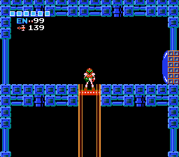 The "Brinstar end shaft" is a room in Brinstar. It appears, with some differences, in Metroid and Metroid: Zero Mission. In Metroid, the room features the gold color scheme present in other shafts of eastern Brinstar. It is infested with numerous Rippers, Wavers and Zoomers. When in this room, the highest door (to Corridor No. 3) can only be reached from the top, or by carefully freezing Rippers and Wavers and using them as platforms, due to the lack of existing platforms along that part of the shaft.