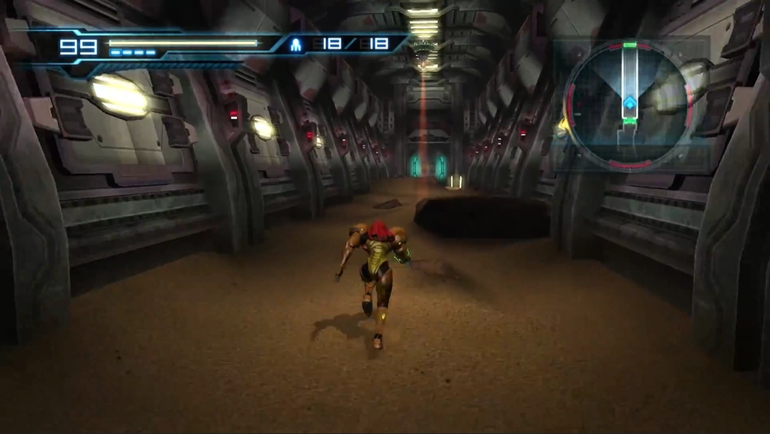 The "red-lit corridor" is a room in Sector 3 / Pyrosphere. It appears in Metroid: Other M. This is a simple, empty room connecting the "long elevator shaft" to the lava cavern. It is the first room in the Pyrosphere to be explored during gameplay, as the elevator shaft is entered automatically and then entirely explored in a cutscene. When Samus enters this room, Adam contacts her with mission orders.