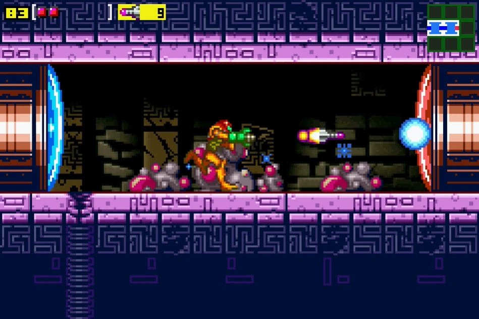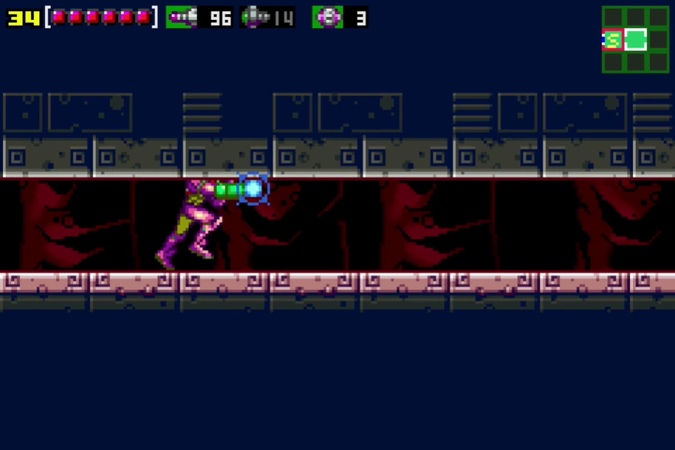 The "Chozo machine hall" is a room in Kraid. It appears, with significant differences between versions, in Metroid and Metroid: Zero Mission. In Zero Mission, the room's appearance has been changed and it is now different from the other two corridors above and below it. Its ceiling and floor are now made of solid material with various Chozo symbols etched into them. Ruined walls with cracks can be seen in the background. It is about the same length as it was in the original Metroid. The acid pits have been consolidated into one large pit near the right side, with the ground on the left having a slight divot in the center.