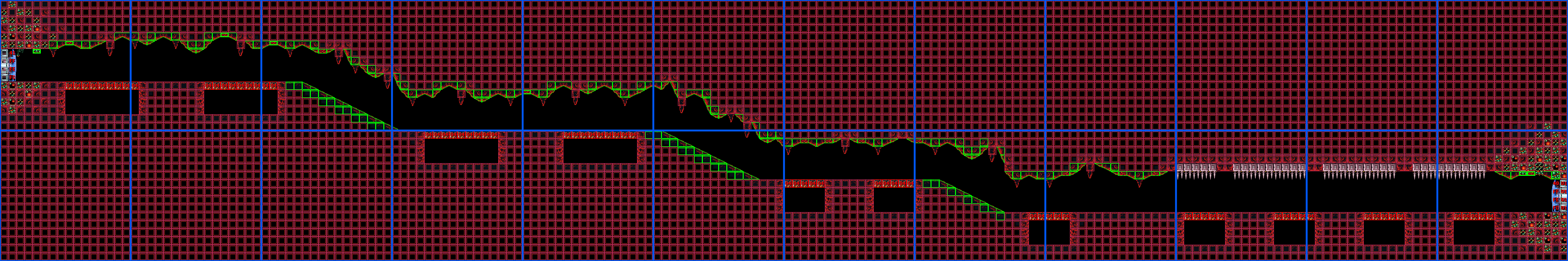 The "Speed Booster Hall" is a room in Norfair. It appears in Super Metroid. This room is one of the longest corridors in Norfair, and is on an incline. It is set within a large cave isolated from the nearby environments with green bubble-like material, although said material has grown over the room near its entrance and exit. The room is superheated and with an initially shallow pool of lava near the base of the path. The ceiling is lined with spikes close to the end as well. Along the ground are numerous pits with false floors above them. To safely cross over these pits, the Dash button must be used. Three of the pits have Gerutas in them, which are released once Samus runs over the Pit Blocks in the fake floors.