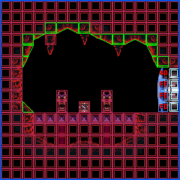 The "Lower Norfair Fireflea Room" is a massive shaft in Lower Norfair. It appears in Super Metroid. This is one of the largest rooms in Norfair, if not the entire game. Unlike much of the surrounding areas, it is not superheated, meaning it would be safe for Samus Aran to stay in without the Varia Suit. The most significant feature is the presence of a massive rock formation resembling a creature's open mouth. A green orb embedded into the cave rock serves as its "eye", while stalactites and stalagmites in the "maw" opening serve as the "teeth". A bed of spikes is found directly under the creature's maw. Aside from a metal walkway below the door and within the open "creature", this room is almost entirely composed of natural cave.