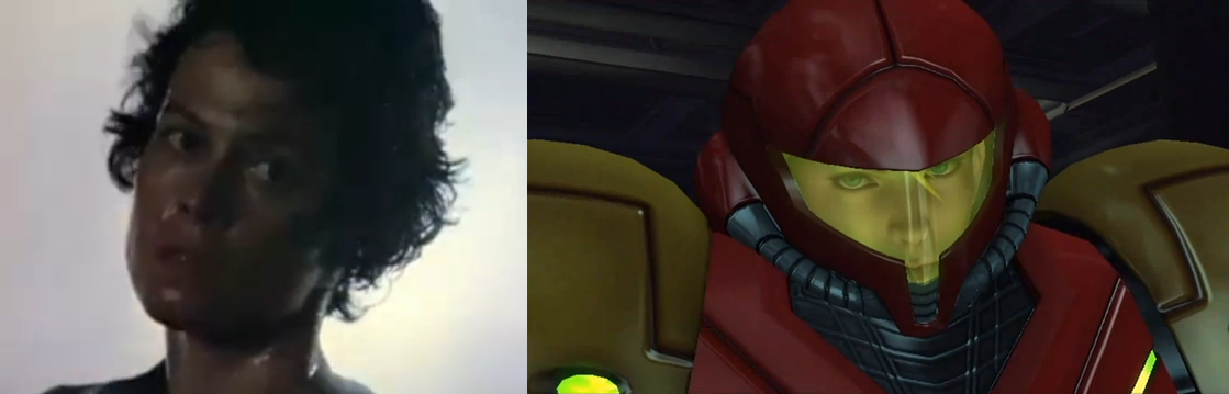 Ripley ends up scantily clad near the end of the film. Samus ends up scantily clad near the end of the game (if certain requirements are met).