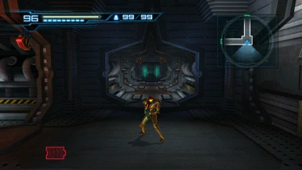 | Targeting Reticule | Threat Assessment | Radar | Map | Energy Meter | Phazon level | "Heart Monitor" Translator Module | Screen-Shot Tool | "Low battery warning" | Sight Window | Scan Point | Infrared Ray Scope Charge Meter | Missile Counter | Ammo Gauge | Visor Select | Command Icon | Hover Gauge | Aeion Gauge | Bookmark/Map Pin | Nav point | Points bonus |