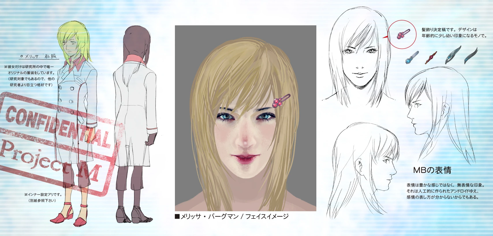 Samus heads to Room MW after Sector Zero has been destroyed, where she encounters another survivor. This person claims to be Madeline Bergman. Shocked at the strange turn of events, Samus tells her that she has already met someone with that name. After Madeline shows Samus her ID, she reveals that the blonde woman from earlier was in fact MB in an android body. She originally had an infrastructure modeled after Mother Brain (subsequently resembling Aurora Units as well) with her AI, constructed to help regenerate and control the Space Pirate special forces. But when the scientists began creating Metroids, she was given a human form to help create a maternal connection to the creatures, thus forming an ideal relationship that is not based on dominance, inspired by Samus's bond with the baby. She was dubbed "Melissa" Bergman by Madeline, to help make her feel more human. Madeline also says she felt that Melissa was like a daughter to her.