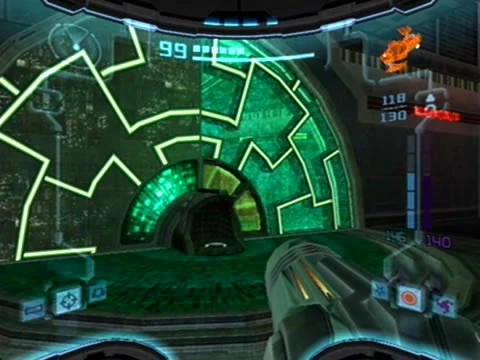 - The Phazon Beam (via hacking) can destroy a breakable glass in this room, the one requiring a cannon to shatter. If done before activating the second color puzzle, the puzzle can still be activated, but appear to be floating without the glass window.