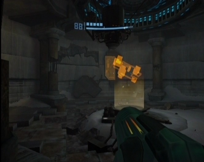 Map Station is a room in the Phendrana Drifts on Tallon IV in Metroid Prime. It is a typical octagonal-shaped Map Station room, containing the Map Station and a few orange Space Pirate panels around the walls that can be scanned to reveal minor details about the Pirate operations. Some of the pillars in the room are broken, the walls are cracked in places, and there are bricks lying about the floor, indicating this room was somehow damaged or its construction is incomplete.