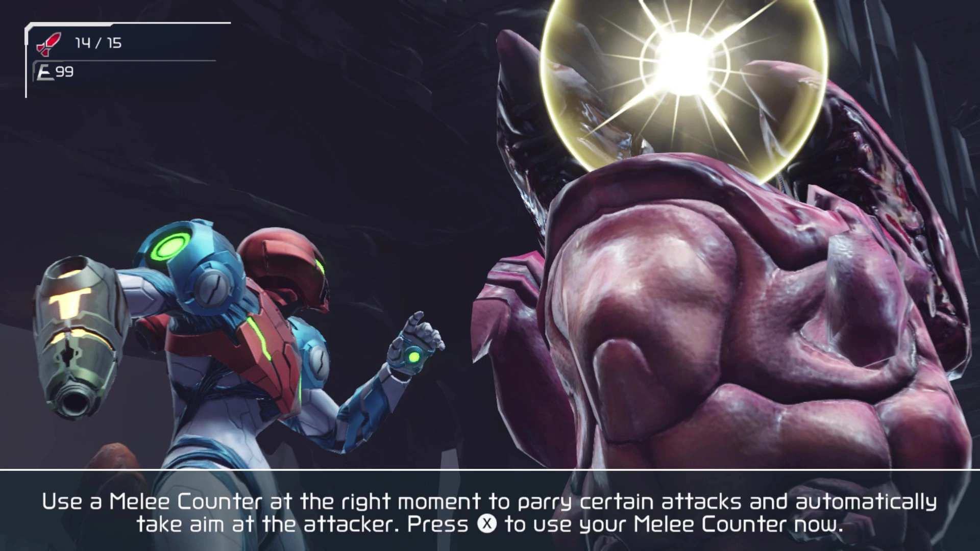 "Samus’ Melee Counter in #MetroidDread creates an opportunity to stun the enemy by parrying their attack with a counter. A powerful follow-up move can be performed, which provides Samus with extra energy & ammo. She can also counter while running.