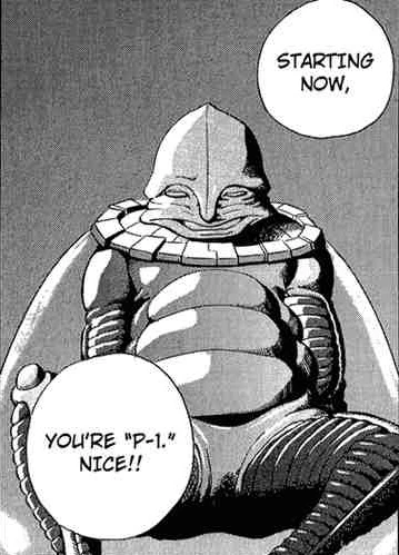 The captured Zebesian is given the designation P-1 prior to his interrogation.