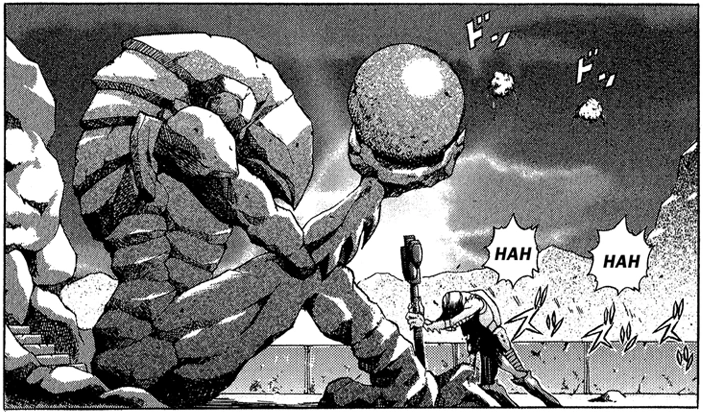 Samus continues to suffer a PTSD attack, to the confusion of Kreatz and Mauk who wonder if something happened between Samus and the Pirates. Platinum Chest explains that her memories of the K-2L massacre, which had been repressed deeply inside her, likely came back. A scene is then shown of Samus’s PTSD, with her as a young girl witnessing Ridley slaughtering both of her parents. The Chozo try to comfort Samus, calling her their child and saying she paid them back well after she was entrusted with their mission. They allow her to cry and release the pain from her heart, for they are her family, which she promptly does. Meanwhile, Ridley flies over the Zebesian landscape while receiving all kinds of messages from the Space Pirates about them being attacked and things going south. Ridley wonders where Gray Voice is and then hears a message that the prisoners escaped. Kreatz and Mauk are shown fighting the Space Pirates while leading the Chozo to safety to the space port. The Pirates inform Ridley of this, but Kreatz steals one of their communicating devices and tells Ridley false recon about their number per an alarmist strategy. However, the group is led into an ambush in a pass and are attacked from behind. Kreatz and Mauk are at a loss, but Samus jumps into battle and swiftly defeats the attacker behind them. She has snapped out of her PTSD attack and declares that protecting the protectors is her duty.