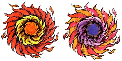 Multiviolas are purple with green or red highlights in the original Metroid, and appear to be featureless fireballs. In Super Metroid and Metroid: Zero Mission, they are redesigned to be orange, with grimacing facial expressions similar to the Viola. In Zero Mission, each Multiviola has three small orbs orbiting it, which may be young Viola.