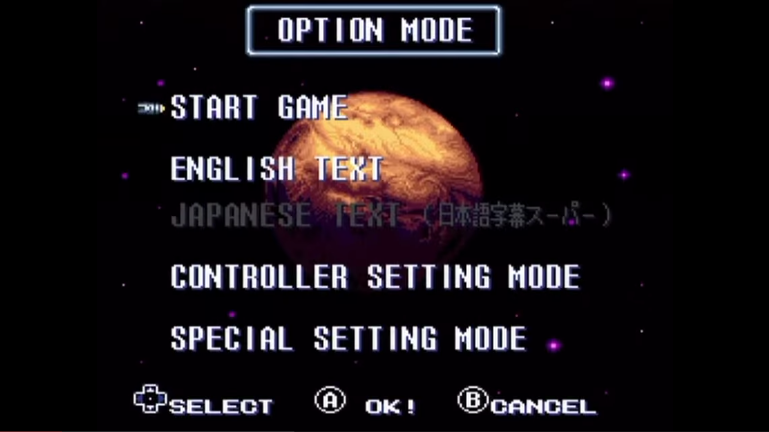 - "The Option Mode Screen allows you to change controller settings and the text language. Move the cursor by pressing Up and Down on the Control Pad buttons to the desired entry, then press the A button to carry out your choice."