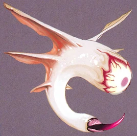 "A small, flying creature whose head resembles a large eyeball. Once it detects Samus, it follows her, aims, and then charges with its large-spiked tail. Sometimes found in flocks. Its small body and agile movements can make it tricky to hit, but the Wide Beam is quite effective against them."