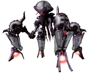 Heavily armed and armored mechanoid. Lightly armored foot joints are vulnerable to Bomb and Boost attacks.