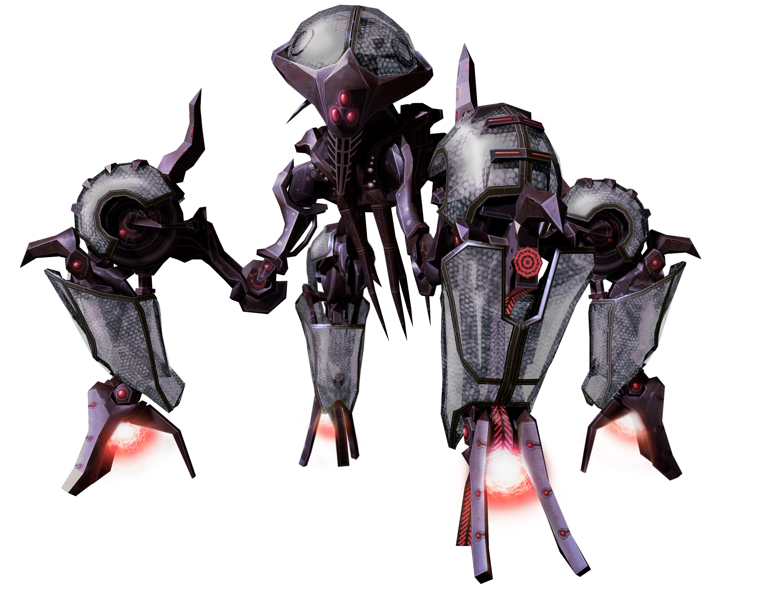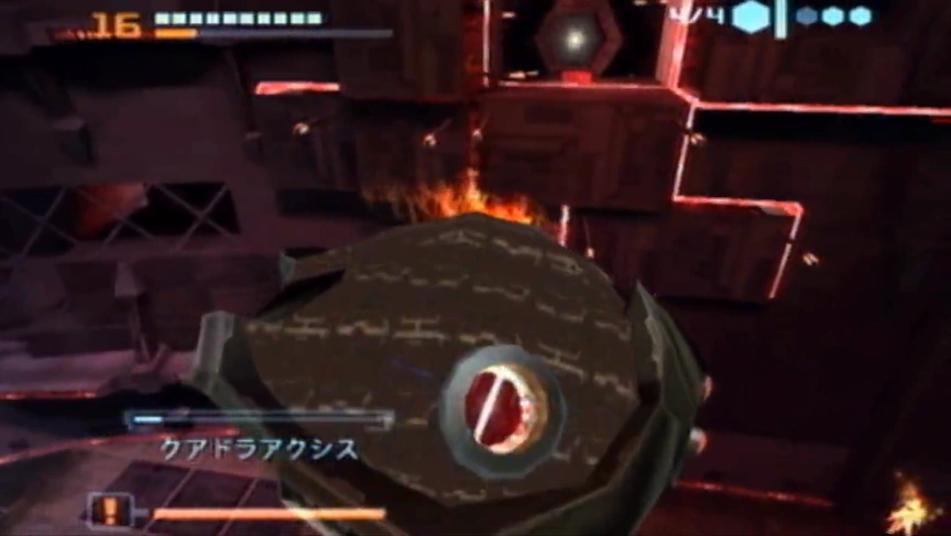 The Quadraxis unit went rogue and entered the service of the Ing. Its primary weapon system fires destructive matter-antimatter blasts. It uses a powerful missile battery for long-distance attacks. The Quadraxis is incredibly durable and well-armored, but its leg and foot joints are vulnerable. Damaging these joints will eventually render it immobile.