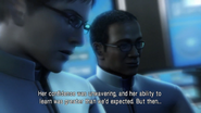 He is seen in flashbacks that take place during Samus Aran's questioning of Dr. Madeline Bergman, where she explains MB's development of emotions and opinions that contradicted the humans. While initially impressed with MB's capabilities, he later felt that her "nascent sense of herself" (in Madeline's words) had become a problem. He confronted MB in the Breeding Room, where another scientist had just been murdered, and had two Security Guards restrain her.